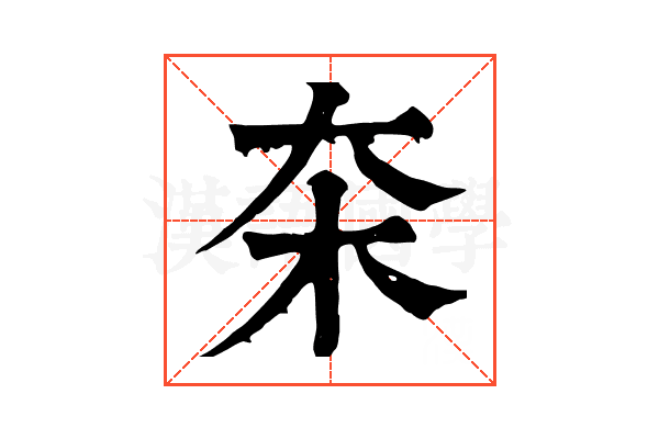 〔㚓〕字是多音字,拼音是lái、lǎi,上下结构,可拆字为大、朩。