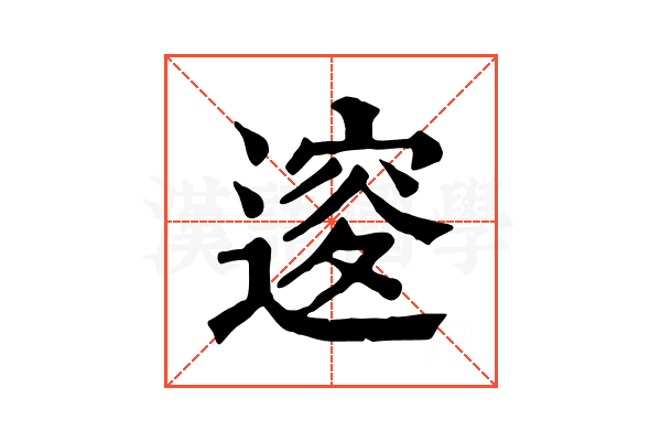 𨕦〕字拼音是qiù,半包围结构,可拆字为辶、宀、八、𠆢、夂