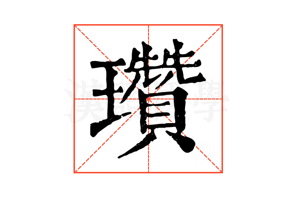 〔瓚〕字拼音是zàn,左右结构,可拆字为⺩、贊。