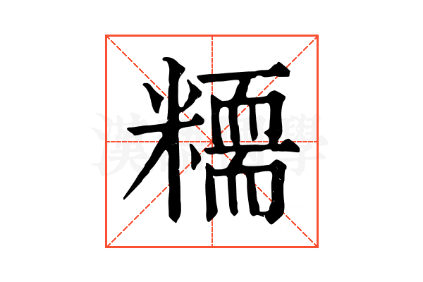 〔糥〕字拼音是nuò,左右结构,可拆字为米、𦓔。