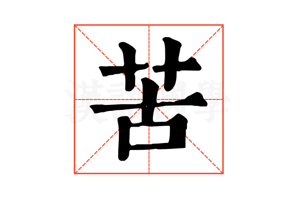 唐韻》:康土切;《集韻》、《韻會》:孔五切,𡘋音䇢。說文》:大苦,苓也。詩・唐風》:采苦采苦,首陽之下。【傳】苦,苦菜也。陸璣云:生田及山澤中,得霜甜脆而美。謝靈運〈山居賦〉:二箭殊葉,四苦齊味。自註:四苦,靑苦、白苦、紫苦、黃苦。