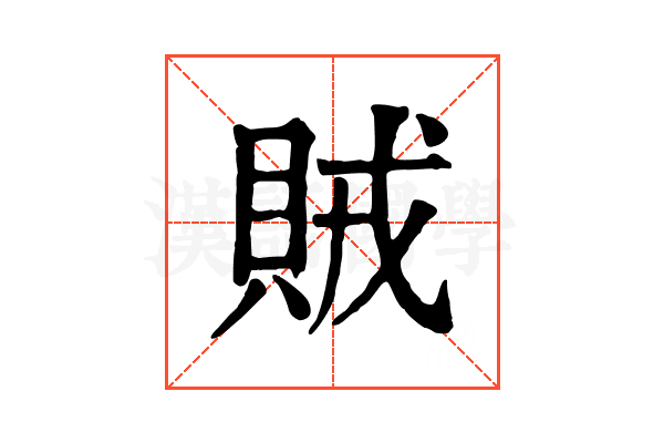 〔賊〕字造字法是形聲。从戈,則聲。刀毀貝, 始見於西周金文。本义是殘害;傷害。
