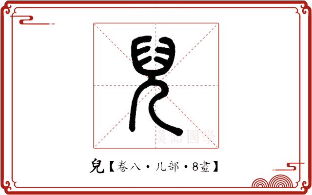 甲骨、金文已見隸作兒的字。甲文字從人,人首頂戴臼形物不識。《說文》認為是小兒頭囟未合,但囟字寫法與此異。學界有以為是總角形。篆文改從儿。楷書為篆、隸字形的簡省。