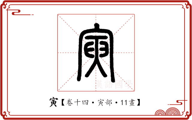 寅,摈弃排斥。寅代表正月,此时阳气发动,离开地底黄泉,想要向地上冒出,但地面的阴气还很强,就像屋盖一样遮盖,使阳气不能 通达地面,排斥在地下。所有与寅相关的字,都采用“寅”作边旁。