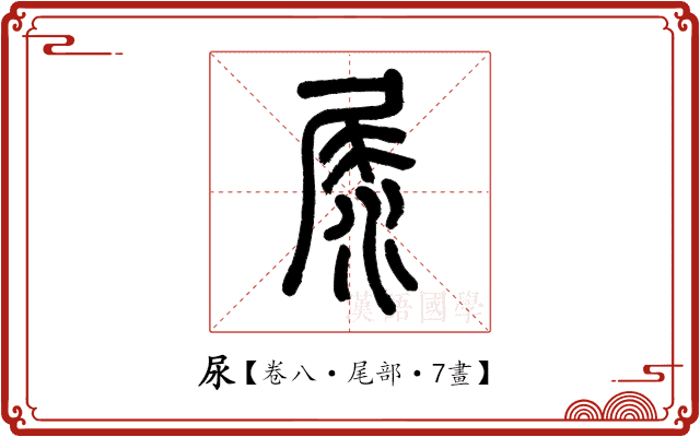 字從人,像人立小便形。篆文訛從尾從水。在六書中屬於異文會意。楷書改從尸從水。部件位置調整,均失卻小便的原形。