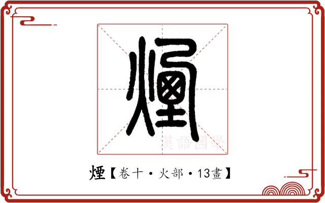煙,燃烧时发出的混合气体。字形采用“火”作边旁,“垔”是声旁。“烟”,有的“煙”采用“因”作边旁,写作“烟”。,是 古文写法的“烟”。