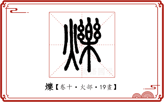 烁,灼烁,发光。字形采用“火”作边旁,“乐”是声旁。