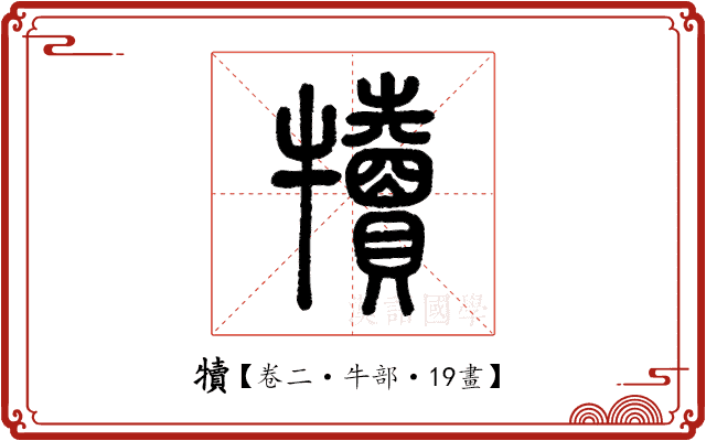 犊,初生小牛。字形采用“牛”作边旁,用省略了“氵”的“渎”作声旁。
