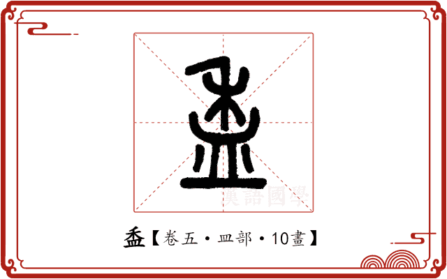 附注《說文新證》:「盉本為象形(員盉、麥盉盉字所从),《金文形義通解》謂前有流高出,後有鋬偏低。金文或加『禾』聲,或加義符『金』,既加了『禾』聲,象形初文就可以類化為『皿』,《說文》小篆繼承的便是這種字形。」