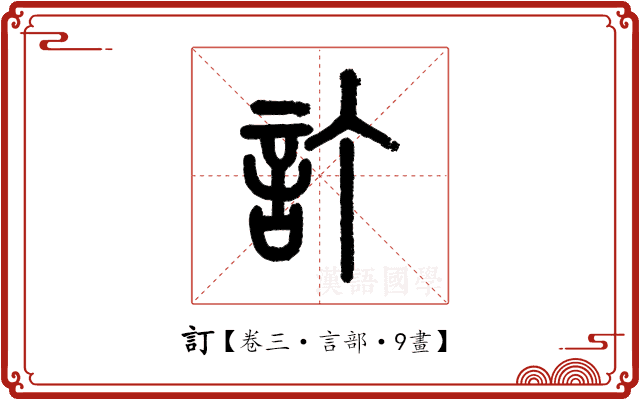 订,评议,作定论。字形采用“言”作边旁,采用“丁”作声旁。