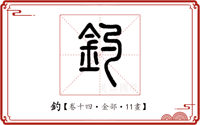 钓,钓鱼。字形采用“金”作边旁,“勺”作声旁。