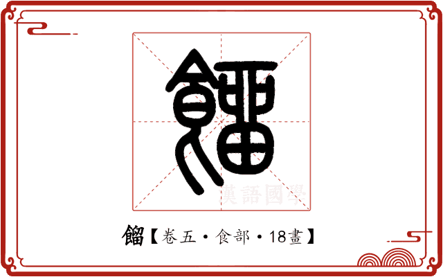 附注《正字通・食部》:「餾,本作𩞷。」朱駿聲《通訓定聲》:「按:米一蒸曰饙,再蒸曰𩞷。」