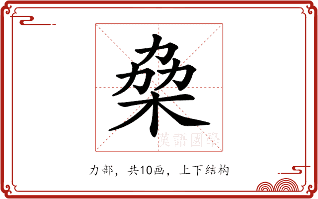 〔𠡷〕字拼音是(nǎo),部首是力部,总笔画是10画。