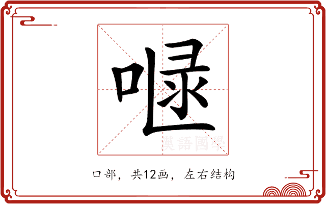 〔𠷍〕字是左右结构,可拆字为“口、𠃊、录”或“口、𠃊、彔”。