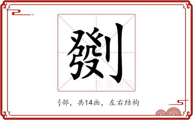 〔㔇〕字是左右结构,可拆字为“發、刂”。