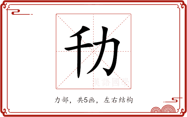 〔㔓〕字是左右结构,可拆字为“千、力”。