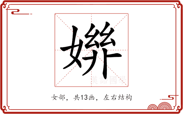 𡠒〕字拼音是(guān),部首是女部,总笔画是13画