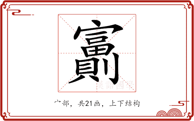 〔𡬂〕字拼音是(guì),部首是宀部,总笔画是21画。