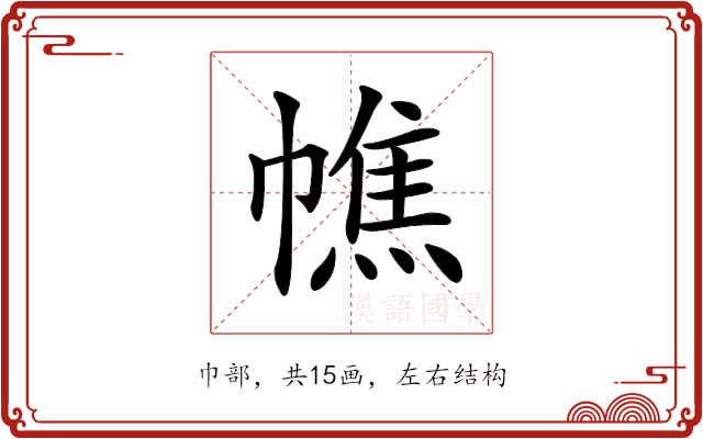 〔𢄺〕字拼音是(jiǎo),部首是巾部,总笔画是15画。