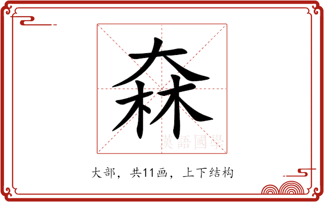 〔㚞〕字是上下结构,可拆字为“大、林”。