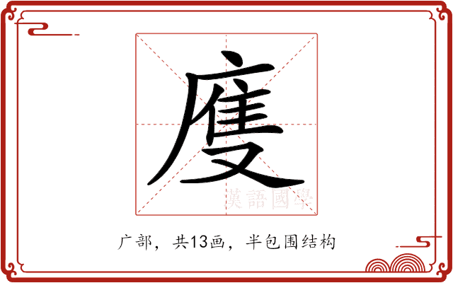 〔𢊄〕字拼音是(huī),部首是广部,总笔画是13画。