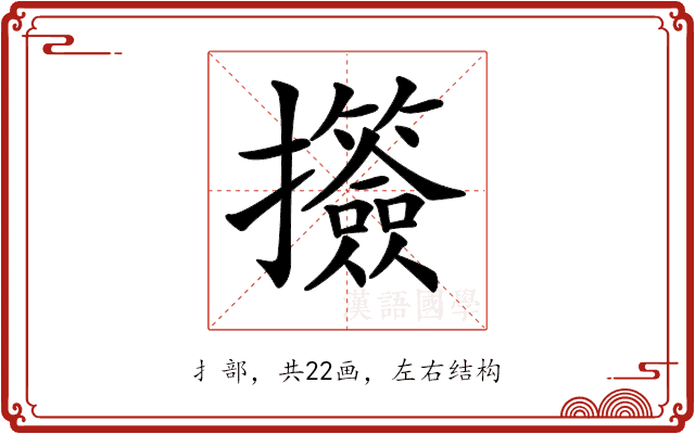 〔𢺅〕字是左右结构,可拆字为“扌、簽”。
