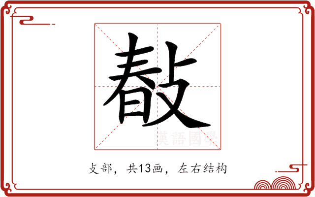 〔𢾎〕字拼音是(chǔn),部首是攴部,总笔画是13画。