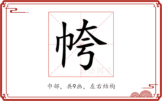 〔㡁〕字是左右结构,可拆字为“巾、夸”。