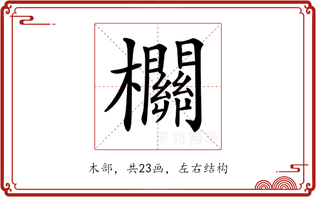 〔𣠸〕字拼音是(shuān),部首是木部,总笔画是23画。
