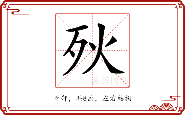 〔𣧛〕字是左右结构,可拆字为“歹、火”。