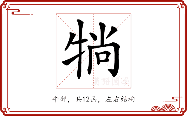 𤙽〕字拼音是(hǒu),部首是牛部,总笔画是12画