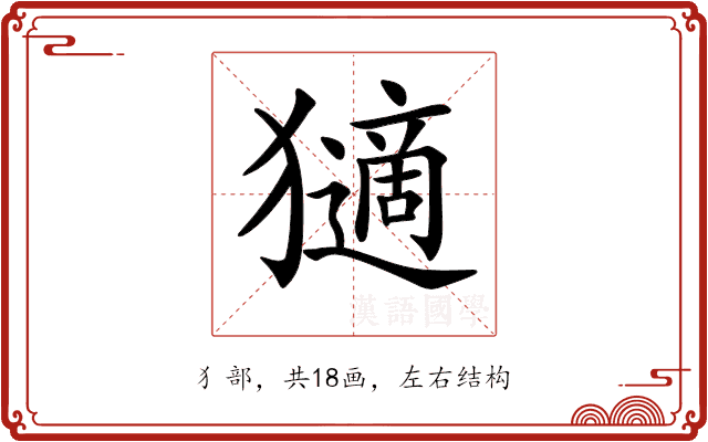 〔𤢼〕字是左右结构,可拆字为“犭、適”。