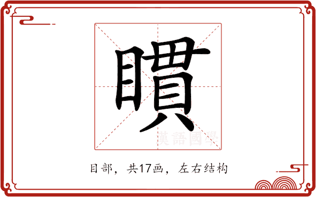 纠错〔𥊫〕字拼音是(guàn),部首是目部,总笔画是17画。