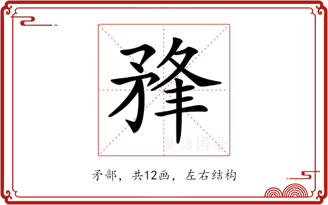 〔𥍮〕字是多音字,拼音是(féng、fēng),部首是矛部,总笔画是12画。