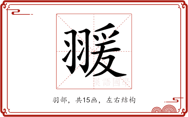 𦑛〕字拼音是(huǎn),部首是羽部,总笔画是15画