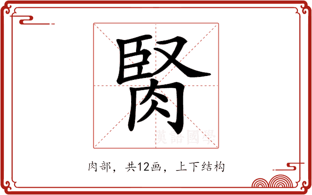〔𦜜〕字是上下结构,可拆字为“臤、肉”。