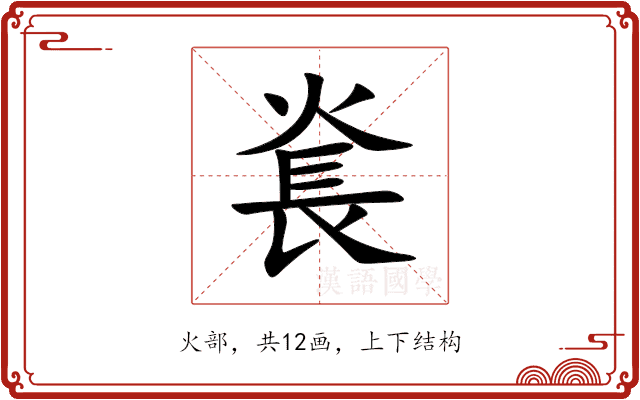 〔㷃〕字是上下结构,可拆字为“火、長”。