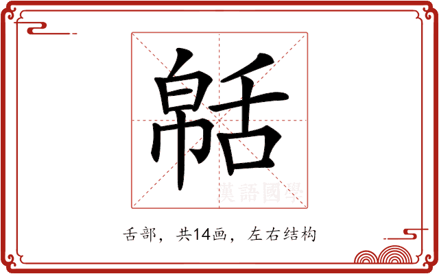 𦧠〕字拼音是(huá),部首是舌部,总笔画是14画