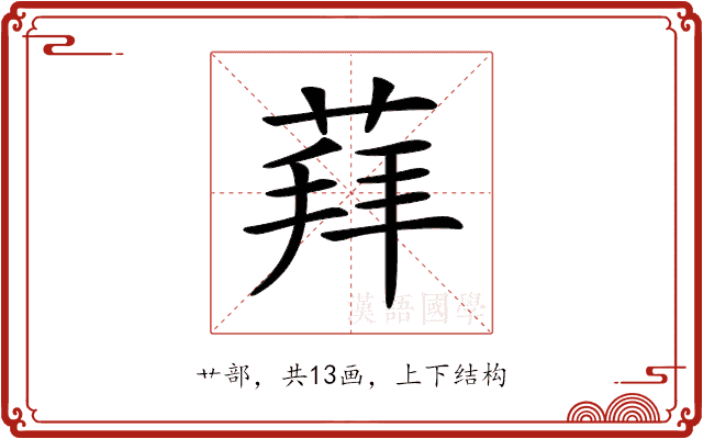 〔𦳞〕字是上下结构,可拆字为“艹、拜”。