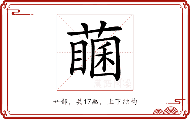 〔𦽖〕字是上下结构,可拆字为“艹、𥇘”。