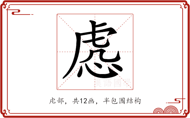 𧆹〕字是半包围结构,可拆字为“虎、心”。