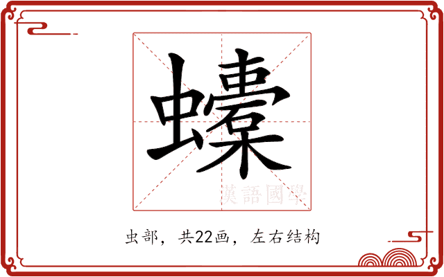 〔𧔬〕字拼音是(dù),部首是虫部,总笔画是22画。