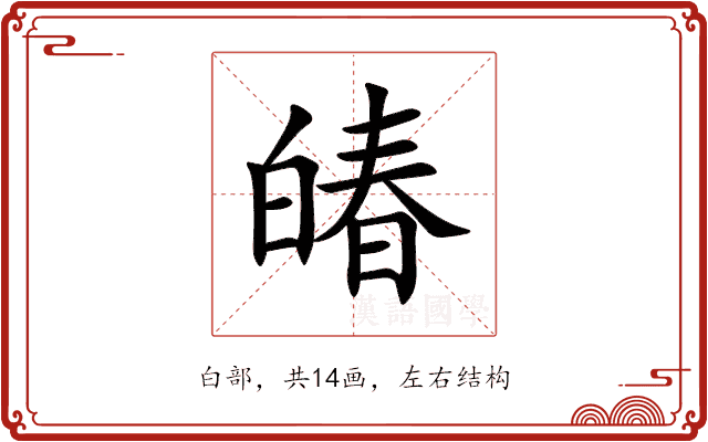 〔㿤〕字是左右结构,可拆字为“白、春”。