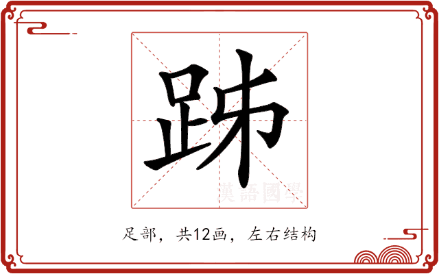 𧿲〕字是多音字,拼音是(zhuì、bó),部首是足部,总笔画是12画