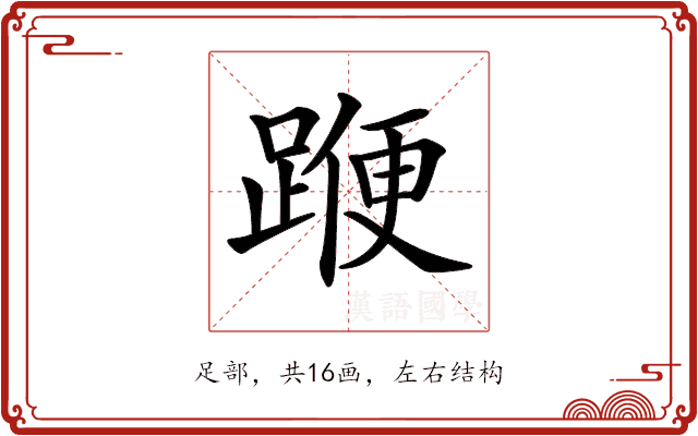 纠错〔𨂯〕字拼音是(pián),部首是足部,总笔画是16画。