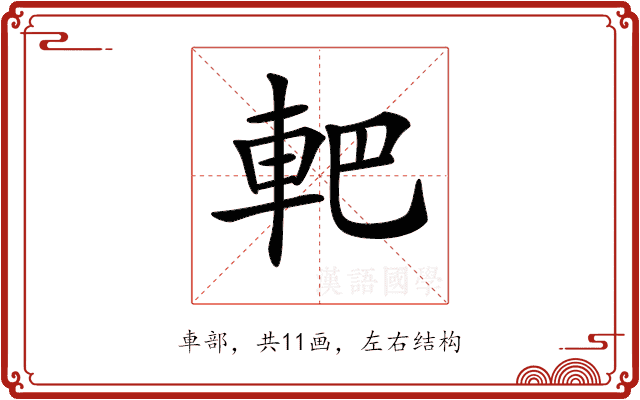 〔𨊹〕字拼音是(bā),部首是車部,总笔画是11画。