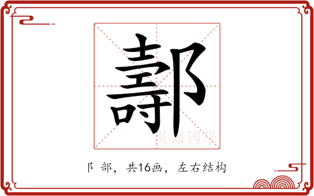 〔𨞪〕字是多音字,拼音是(chóu、shòu),部首是阝部,总笔画是16画。