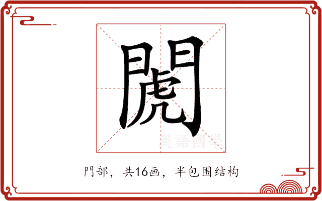 𨵘〕字是半包围结构,可拆字为“門、虎”。