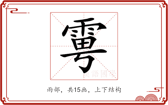 纠错〔𩂾〕字拼音是(píng),部首是雨部,总笔画是15画。