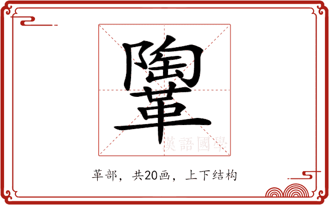 〔𩍂〕字是上下结构,可拆字为“陶、革”。